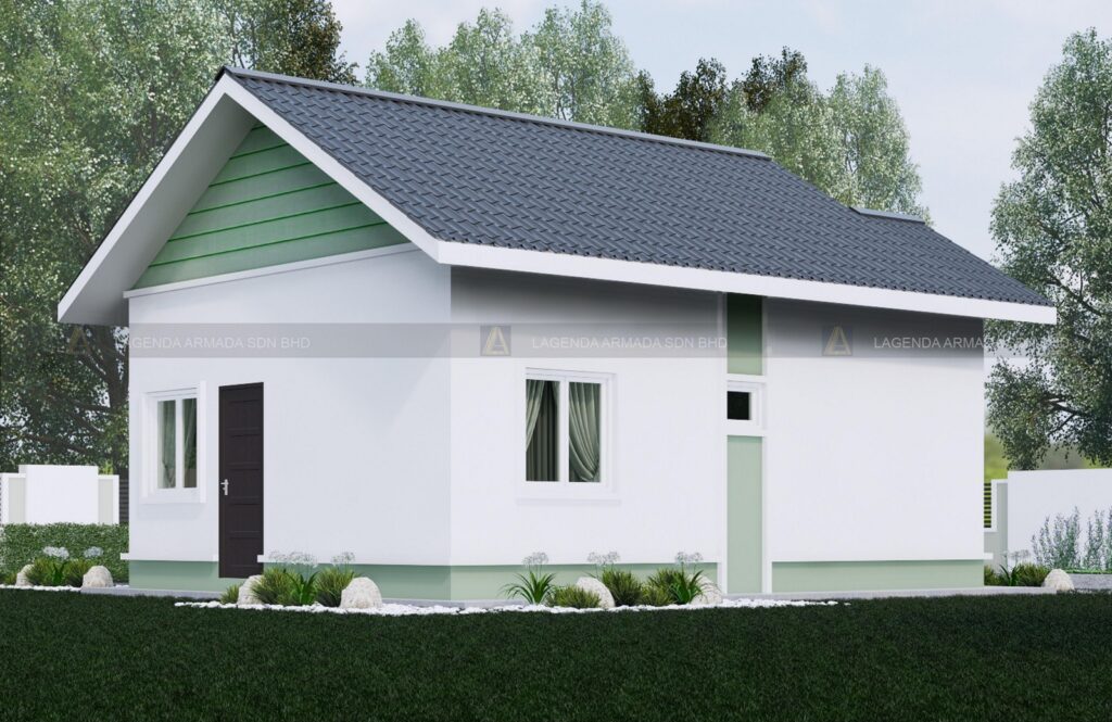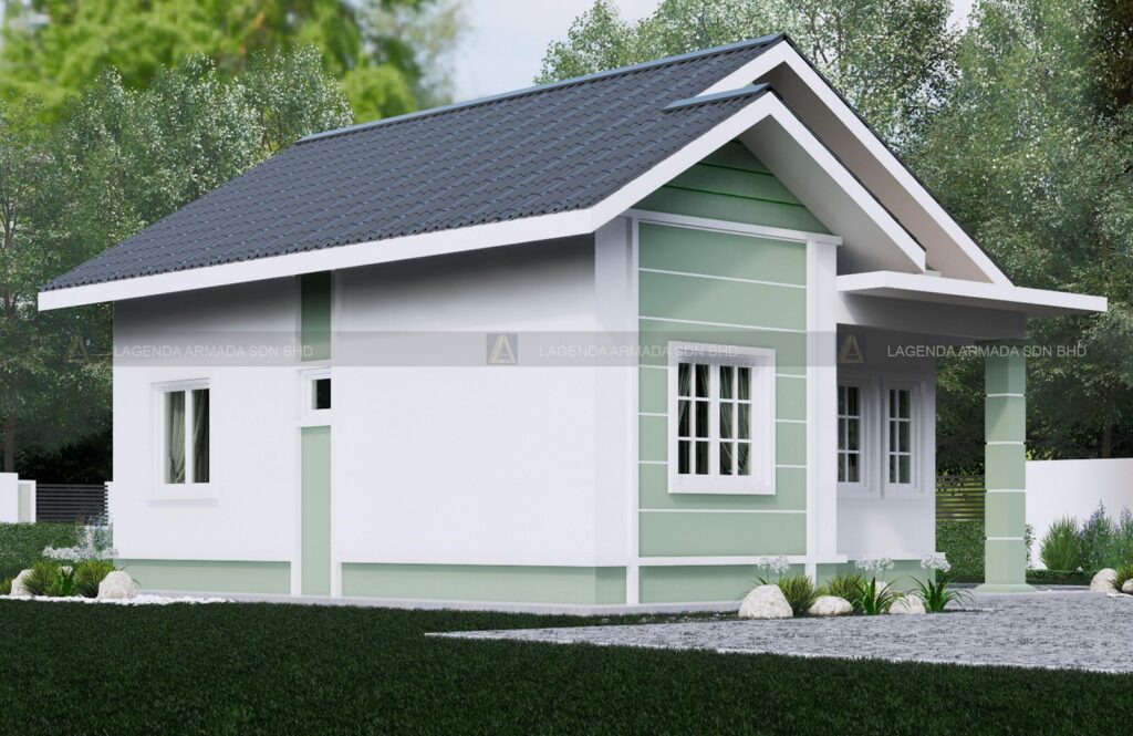 Pakej Lagenda Embun menawarkan pelan banglo setingkat yang mampu milik, bermula dari harga RM 96,000 sahaja. Dengan reka bentuk ringkas Moden (bumbung gable menonjol) dan keluasan 720 kaki persegi, ia menyediakan 2 bilik tidur dan 1 bilik air yang praktikal untuk kediaman kecil.
