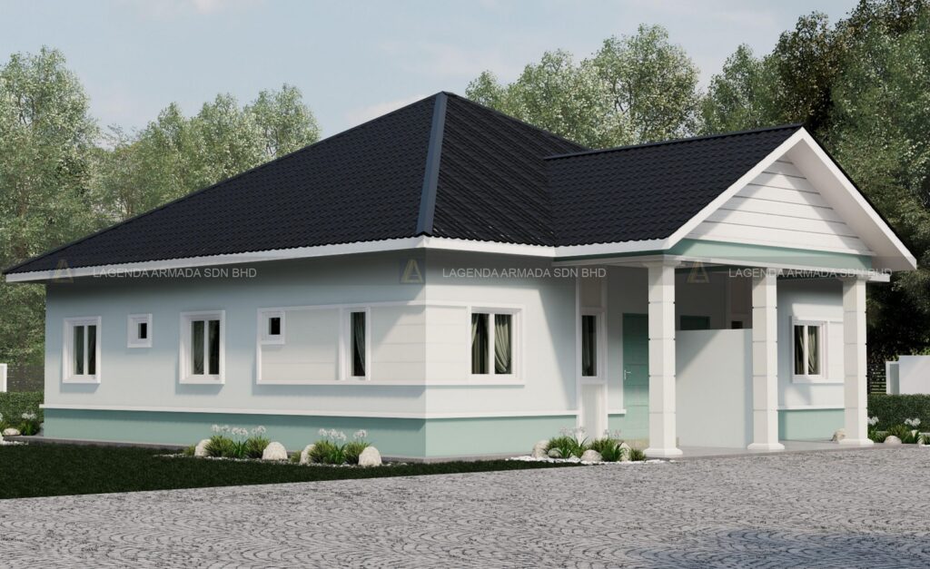 Projek ini akan dibina dengan tapak yang sangat stabil menggunakan Raft Foundation, Lantai Dinaikkan 1 Kaki, dan Rangka Struktur IBS. Kemasan yang akan disediakan merangkumi jubin 2’x2′ di ruang utama, 4 unit shower dan 2 unit Culvert untuk saliran yang lengkap, memastikan pembinaan yang kukuh dan berkualiti.